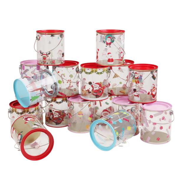 Clear Plastic Paint Can is a plastic paint can containers and clear paint pail made in China. It is certified by ISO, SMETA, DISNEY, O'LREAL and FDA. The minimum order quantity is 3000 and delivery time is 20-25 days. Payment terms are available by T/T or L/C. Printing is customizable, logo accepted custom brand and color as customer's artwork. This metal paint container and metal paint bucket is made of tinplate and PET, it can be used for candy, sugar, nut, etc.